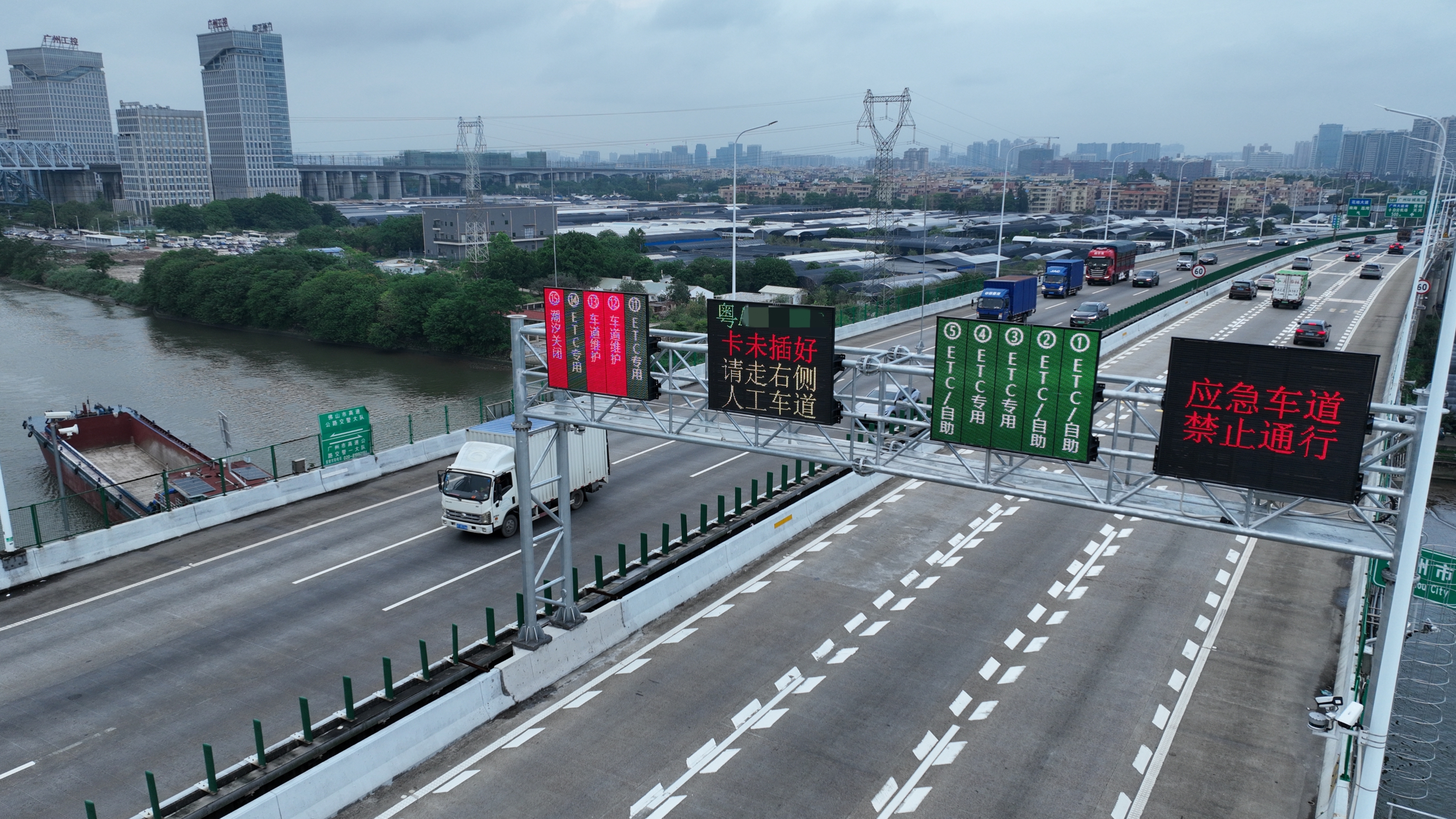 不同于传统收费站存在设备分散、运维复杂等问题,荔湾南站集成应用了嵌入式自助收费设备、一体化栏杆机、诱导屏、雷达感知等智能设备,并对其进行集中智能感控,让设备运维从“现场跑腿”转为“云端管理”,设备故障响应速度提升50%。